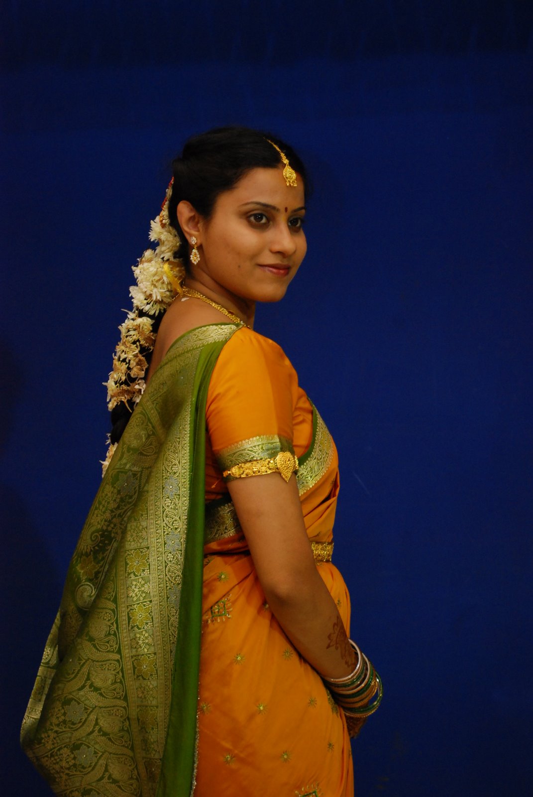 The Mehendi is one of the more modern GSB wedding traditions, where the bride gets an elaborate henna design, traditionally known as mehendi, which is a paste made from crushed Lawsonia inermis leaves, which is usually used for decoration of the skin, or for dyeing hair. The design covers both the arms and the feet of the bride, ranging from the fingertips to the elbows on the arms and from the toes/feet to the knees on her legs. It depends on the design, but some designs have a bride and a groom on the palms, so that they meet when the palms touch, however all wedding mehendi designs tend to be very detailed and intricate, sometimes with hidden details for the groom to find.
