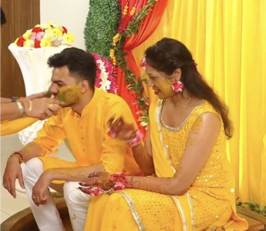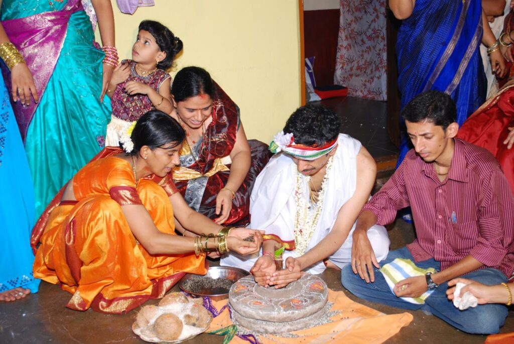 The Urdha Muhurth is a ritual that allows both the bride to bond with her bridesmaids and other females in the family by grinding Urad dal using a typical stone grinder. Urad dal is a lentil that is commonly used in GSB cooking, hence its usage in this ritual. Typically, the groom performs the ritual with his groomsmen as well, and the ritual shows the bride and groom interacting with their family and helps fosters bonds between them.